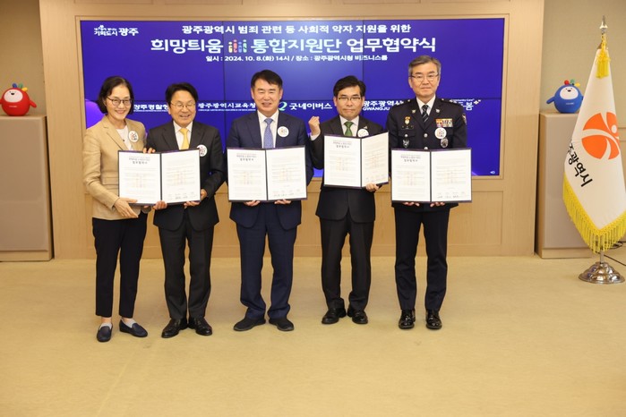 광주시교육청, 광주시, 광주경찰청, 사회복지법인 굿네이버스는 8일 시청 비즈니스룸에서 ‘범죄피해 학생과 가정의 일상회복과 건강한 성장’을 지원하기 위한 업무협약을 체결했다.