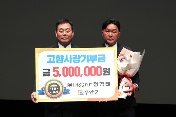 12‧29 제주항공 여객기 참사 수습으로 인해 늦어진 기탁식에서는 고향사랑기부제가 시행된 2023년부터 3년 연속 남다른 고향 사랑을 보여주고 있는 (유)H&C 정경태 대표가 1호 고액 기부자로서 자리를 빛냈다.