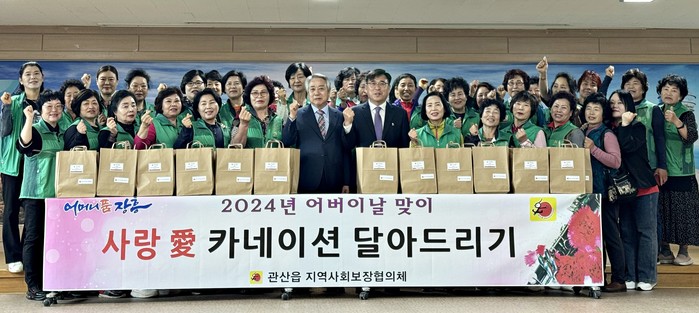 지역사회보장협의체 위원들과 관산새마을부녀회(회장 이종단)에서 200명의 어르신 댁을 방문하여 카네이션을 직접 달아드리고, 준비한 간식꾸러미를 전달했다.