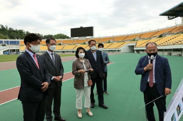 [프레스뉴스] 김대일 기자= 26일 경기도의회 문화체육관광위원회 최만식 위원장(민주당, 성남1), 채신덕 부위원장(민주당, 김포2), 손희정 위원(민주당, 파주2)은 2021년 경기도종합체육대회 추진 상황의 확인을 위해 파주시청, 파주스타디움 등 현장을 방문했다.