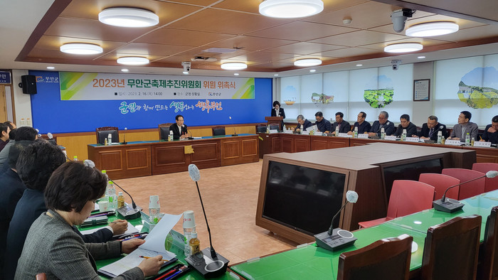 [전남=프레스뉴스] 강래성 기자= 전남 무안군(군수 김산)은 지난 16일 무안군 축제추진위원회 위원 위촉식을 갖고 첫 회의를 실시했다.
