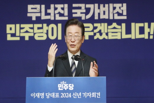 [프레스뉴스] 강보선 기자= 이재명 더불어민주당 대표가 신년 기자회견을 갖고 "지난 2년간 윤석열 정부는 국민 뜻을 무시한 채 정적 죽이기에만 올인했다"며 이번 총선에서 윤석열 정부를 심판해달라고 호소했다.