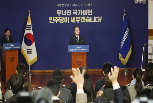 | ▲이재명 더불어민주당 대표가 31일 오전 서울 여의도 국회 사랑재에서 열린 2024 신년 기자회견에서 취재진의 질문을 받고 있다.(사진= 뉴스1) |
