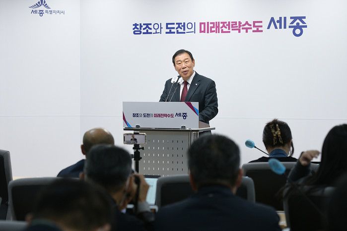 ▲최민호 세종시장이 24일 기자회견에서 발언을 하고 있다(사진=세종시) |