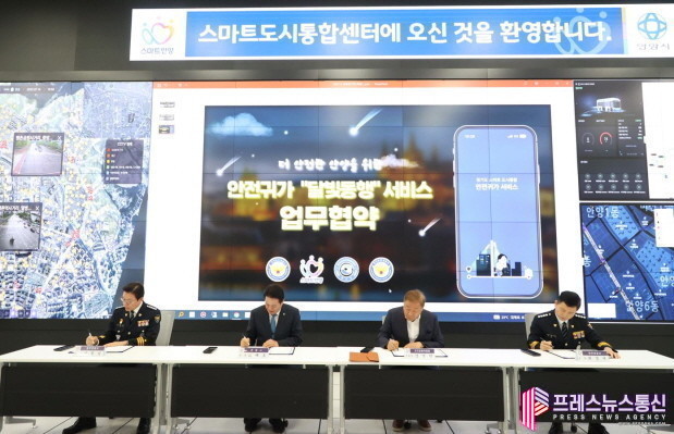 [프레스뉴스] 장현준 기자= 안양시는 14일 오후 3시 30분 스마트도시통합센터에서 경기도남부자치경찰위원회 및 안양 동안·만안경찰서와 ‘스마트폰 안전귀가 달빛동행’ 의 안정적인 운영을 위한 업무협약을 체결했다.