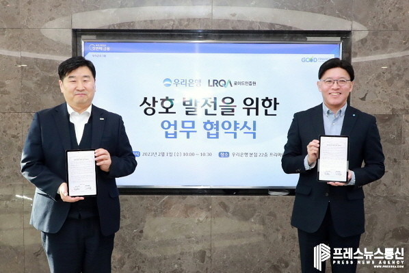 [프레스뉴스] 김대일 기자= 우리은행(은행장 이원덕)은 기업의 지속 가능한 발전을 위한 ESG경영의 중요성에 대한 인식을 같이하고 상호 이해와 협력을 바탕으로 ESG경영을 강화하기 위해 글로벌 인증기관인 로이드인증원과의 업무협약을 체결했다고 1일 밝혔다.