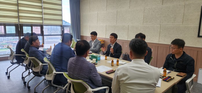 | ▲한빛원전 임원들과 원전 계속운전 관련 주민공청회 의제를 논의했다./함평군 제공 |