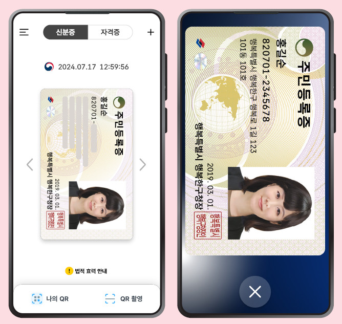 모바일 주민등록증은 ‘QR코드를 통한 발급’과 ‘IC칩이 내장된 주민등록증을 통한 발급’, 2가지 방법으로 신청할 수 있다.