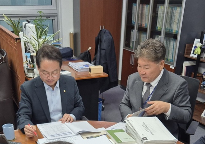 | ▲국비예산확보 막판 총력전(허영 예결위 간사 면담)/영광군 제공 |