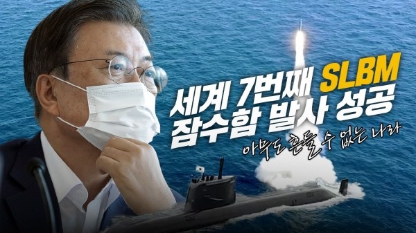 이어 문 대통령은 “1921년 도산 안창호 선생은 ‘우리가 믿고 바랄 바는 오직 우리의 힘 뿐’이라고 말씀하셨는데, 그로부터 100년이 지난 오늘 우리는 SLBM을 비롯한 미사일전력 시험의 성공으로 아무도 흔들 수 없는 자주국방의 역량을 더욱 굳건하게 다지게 되었다”고 말했다.