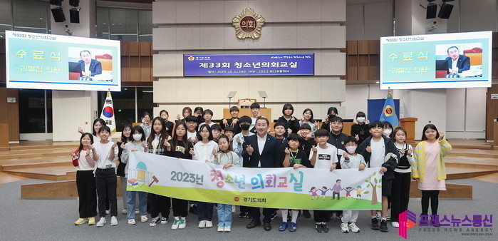 [프레스뉴스] 김대일 기자= 경기도의회 김철진 의원(더민주, 안산7)은 지난 11일 경기도의회 본회의장에서 진행된 ‘2023년 제33회 청소년 의회교실’에 참석해 안산시 관산초등학교 학생들을 격려했다.