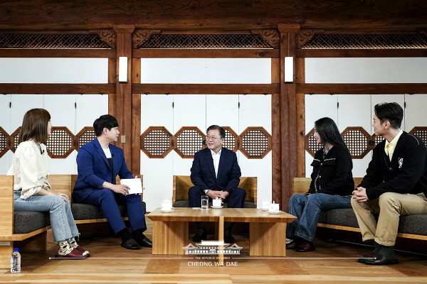 문 대통령은 신혼부부, 휴직 청년, 창업 준비 청년, 대학생, 스타트업 대표 등 7명의 청년들이 털어놓는 주거, 창업, 등록금, 코로나 우울증 등 다양한 고민을 경청하고 공감하면서 정부의 지원 정책 등을 설명했다. 그리고 코로나 이전에는 청년과 악수하고 셀카도 찍으며 소통하곤 했는데, 거리두기로 인해 기회가 많이 없어서 아쉽다고 말했다.