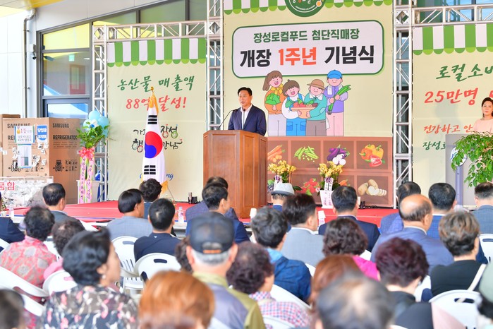 기념식에 참석한 김한종 장성군수는 “출하농가와 농업인단체, 농협 등 모두의 성원에 힘입어 개장 1년 만에 누적매출 88억 원이라는 큰 성과를 거뒀다”면서 “앞으로도 장성로컬푸드 첨단직매장이 오랫동안 사랑받을 수 있도록 힘을 모아 주시기 바란다”고 말했다.