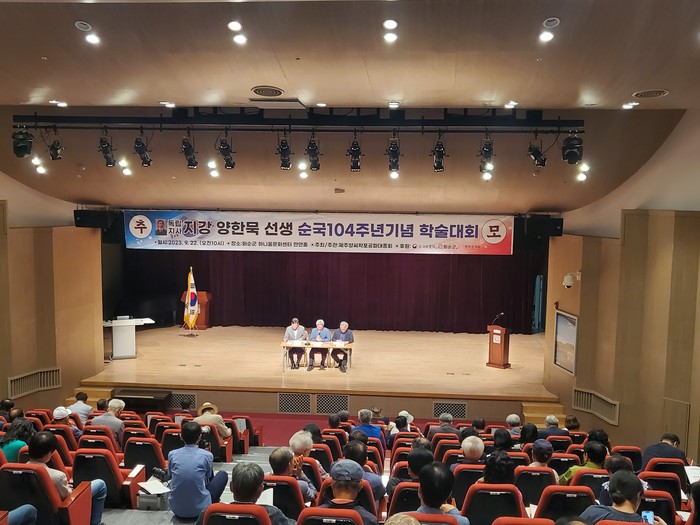 제주양씨학포공파대종회 주관으로 열린 이번 학술대회는 국가 보훈부 공모사업에 선정되어 호남 유일의 민족 대표 33인 중 한 분으로 독립선언서를 발표한 후 일제 군사경찰에게 체포되어 옥중 순국하신 지강 양한묵 선생의 독립사상과 애국정신을 기리기 위해 마련되었다.