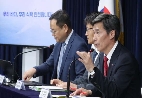 이날 브리핑에 배석한 송상근 해양수산부 차관은 우리 해역 수산물 안전관리 현황을 발표했다.