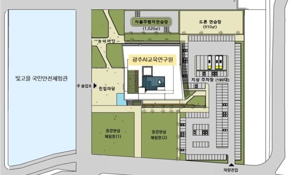 AI교육연구원은 부지면적 2만2,172㎡, 건축면적 9,451㎡이며 지하 1층과 지상 3층(▲1층 AI체험·전시공간(누리터) ▲2층 AI교육관(배움터) ▲3층 AI연구관(세움터)) 총 4층 규모로 설립 예정이다.