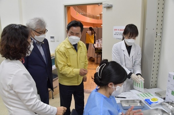 이날 현장에서 접종상황을 점검한 박정현 부여군수는 “기존 아스트라제네카 백신의 접종체계가 아닌 새로운 접종방법과 백신수급에 따라 여러 상황이 발생할 것으로 가정해 이미 수차례 시뮬레이션과 접종모의 훈련을 실시했다”면서 “보건소를 중심으로 면밀한 협조 체계를 유지하며 단 한 건의 안전사고 없이 신속하게 백신 접종을 완료하는데 만전을 기하겠다”고 말했다.