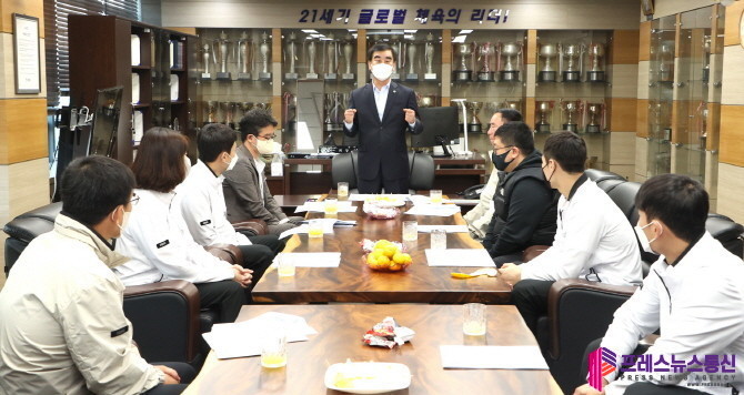 이에 이원성 경기도체육회장은 “경기도가 2002년부터 17년 연속 전국체전 우승을 거둬오다 2019년 서울시에 1위를 내준 이래 선수를 포함한 체육인 모두가 과거의 위상을 되찾기 위해 고군분투해 왔다”라며 “이러한 노력을 알아주고, 선수단을 격려하기 위해 한달음에 달려와 준 의장께 진심으로 감사드린다”라고 답했다.