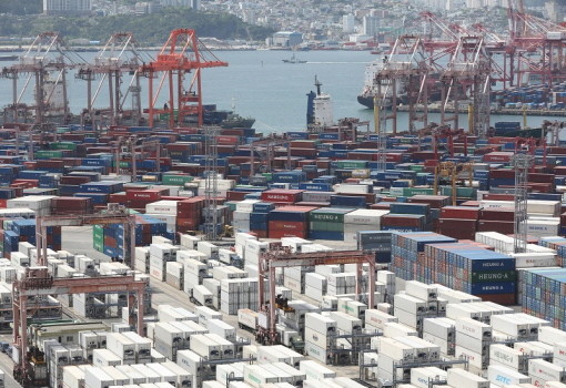 | ▲25일 부산항 신선대부두에 컨테이너가 가득 쌓여 있다.(사진= 뉴스1) |