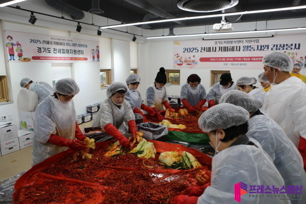 [프레스뉴스] 류현주 기자= 경기도 전세피해지원센터(이하 센터)는 25일 수원시 팔달구 행궁동 어울림센터에서 진행된 ‘2025 전세사기 피해자 월동지원 김장봉사’에 참여했다고 밝혔다.