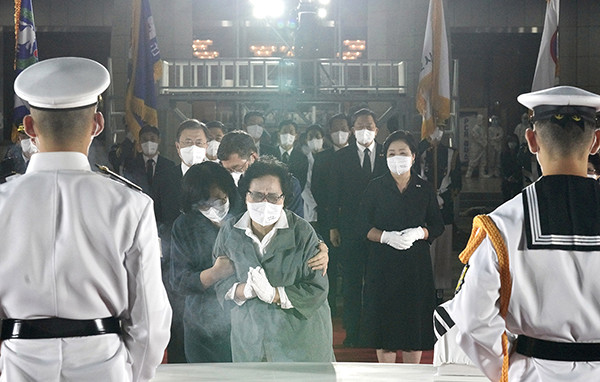 이후 문 대통령 부부는 유족들에게 허리 숙여 인사하고 흐느끼는 故 김석주·정환조 일병의 두 딸의 손을 잡고 포옹하며 위로했다.
