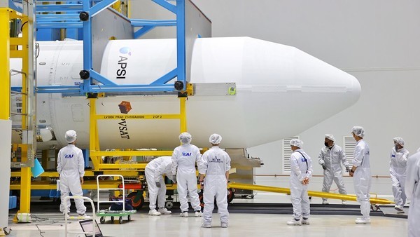 ▲누리호 최종 결합 작업. (사진=한국항공우주연구원) |