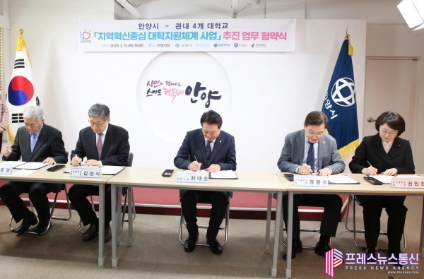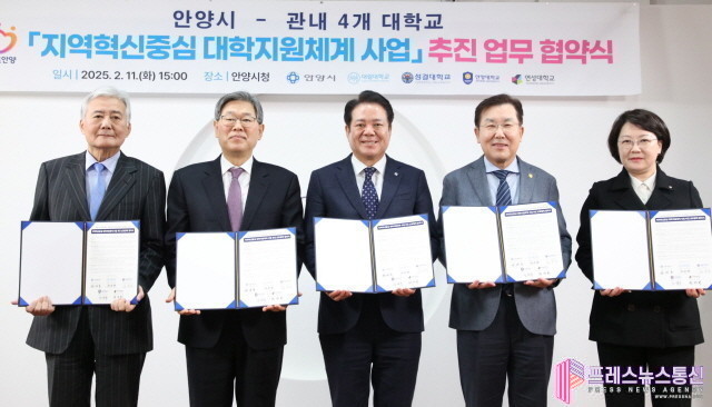 [프레스뉴스] 장현준 기자= 안양시와 대림대・성결대・안양대・연성대 등 관내 4개 대학은 11일 ‘지역혁신중심 대학지원체계(RISE)’ 사업 추진을 위한 업무협약식을 개최하고 성공적인 상호 협력체계 구축을 다짐했다.