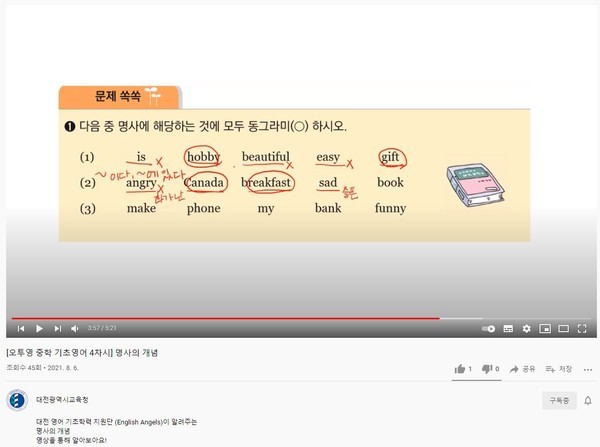 ▲ 대전시교육청이 유튜브를 통해 제공하는 영어 기초학력 학습자료. (사진제공=대전교육청) |