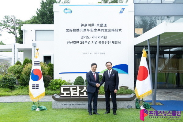두 사람은 이날 그동안 지속적으로 협력해 온 경제, 관광, 문화, 스포츠 등 다양한 분야에서의 성과를 기반으로, 주요 글로벌 의제에 공동 대응하기로 뜻을 모았다. 특히, 치열해지는 기술 경쟁과 관세 전쟁 등 급변하는 환경에 능동적으로 대응하고, 첨단산업 중심지로서의 입지를 더욱 강화하기 위해 긴밀히 협력해 나가기로 했다. 이에 따라 양 지역은 이러한 내용을 담은 ‘경기도-가나가와현 친선결연 35주년 기념 공동선언’에 서명하고, 앞으로도 실질적이고 지속적인 교류와 협력을 이어갈 것을 약속했다.