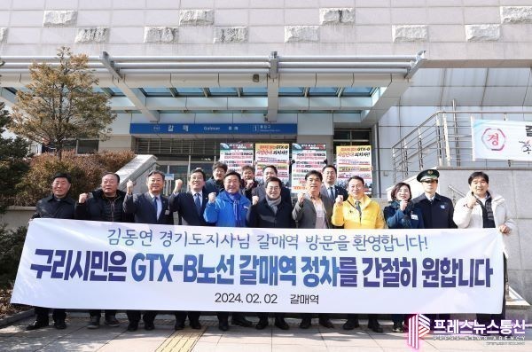 이날 윤호중 국회의원과 함께 구리시 갈매역을 방문한 김동연 지사는 “GTX가 통과하는 지역 중 유일하게 구리시만 정차역이 없어 대단히 불합리하다고 생각하고 있다”며 “갈매역 인근 주민과 경기도민을 위해 갈매역에 GTX가 꼭 정차할 수 있도록 함께 힘을 모으겠다”고 말했다.