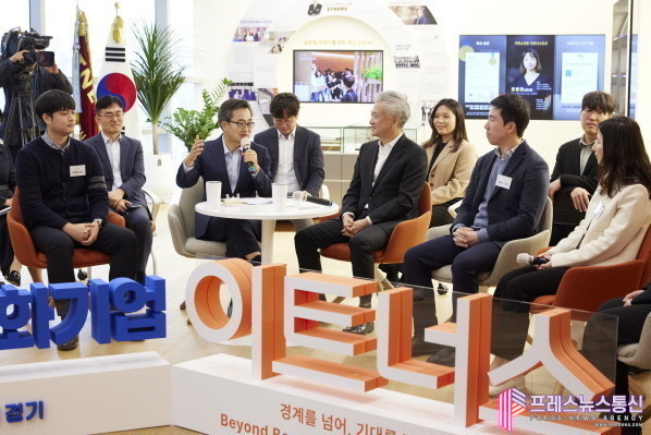 | ▲24일 오전 이트너스(주)에서 김동연 경기도지사와 이트너스 임각균 대표 및 소속직원 등이 참석한 가운데 가족친화기업 직원과의 타운홀미팅을 하고 있다.(사진=경기도) |