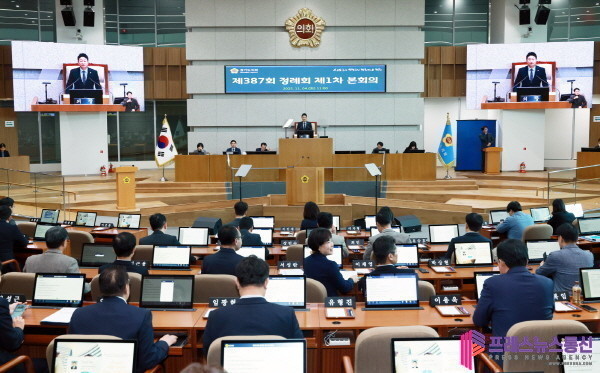 김 의장은 이날 제387회 개회사를 통해 “이번 정례회는 제11대 경기도의회의 마지막 행정사무감사와 새해 예산안 심사를 함께하기에 어느 때보다 중요하다”며 “도민들께 약속드린 일들을 끝까지 책임지는 의회가 되어야 한다. 이번 정례회에서 제11대 의회의 정점을 만들겠다는 각오로 의정에 임해달라”고 강조했다.