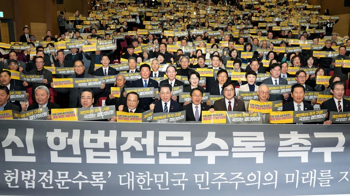 김영록 지사 등 상임대표 3인의 대회사를 시작으로 우원식 국회의장과 각 정당 대표 5인의 격려사, 이부영 전 국회의원의 주제강연, 결의문 낭독, 공동 퍼포먼스가 이어지며 개헌 추진 의지를 결집했다.