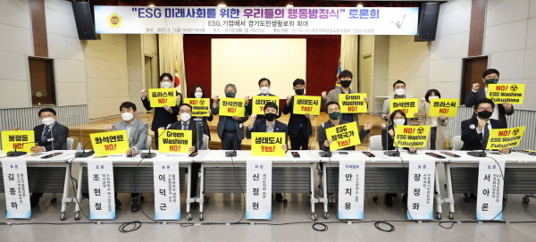 경기도의회 여성가족평생교육위원회와 시민모임인 생활ESG행동은 지난 5월 7일 14시에 경기도의회 대회의실에서 ‘미래사회를 위한 우리들의 행동방정식 토론회(좌장 신정현 도의원)’를 개최하고 경기도의 지속가능한 성장을 위한 도민생활속 ESG 활성화 방안을 제안하고 지역발전 방안을 모색하였다.