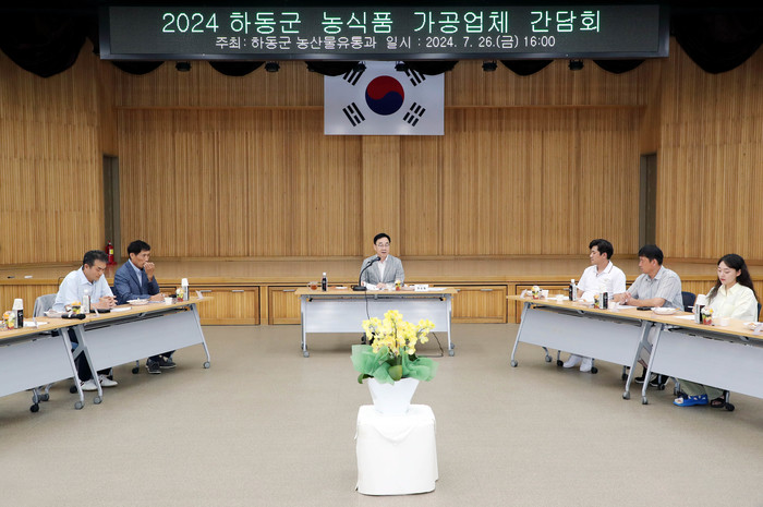 이날 간담회에는 하승철 하동군수를 비롯한 하동군벤처농업협회, 하동군육차 인증협회 등 관내 중소 농식품 가공업체 대표 24명이 참석했다.