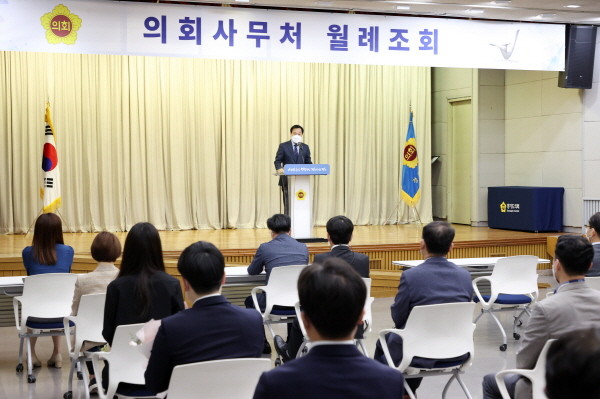 | ▲ 경기도의회 장현국 의장, 5월 월례조회서 지방의회 박람회 성공적 준비 주문 |