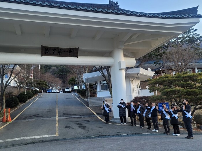 그 일환으로 겨울 방학중 실시되는 연수 집중기 첫날을 맞이하여 청렴 리더 현장지원단을 주축으로 연수원을 방문하는 연수생들을 환영하고 청렴한 생활을 함께하자는 의미로 캠페인을 전개하였다.