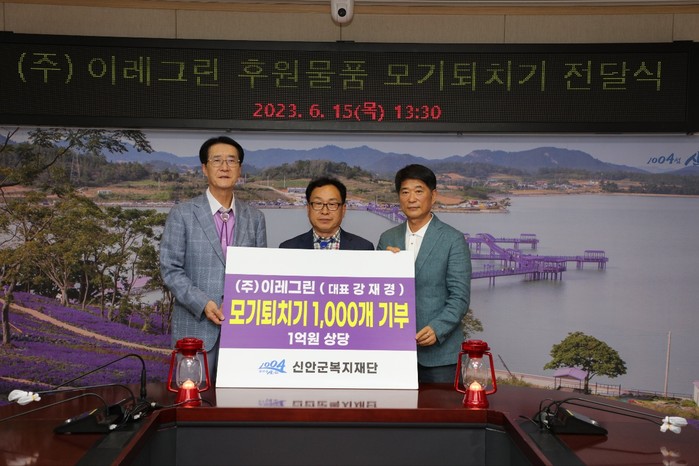 | ▲ 모기퇴치기 1,000개(1억 상당)를 기부받았다고 밝혔다./신안군 제공 |