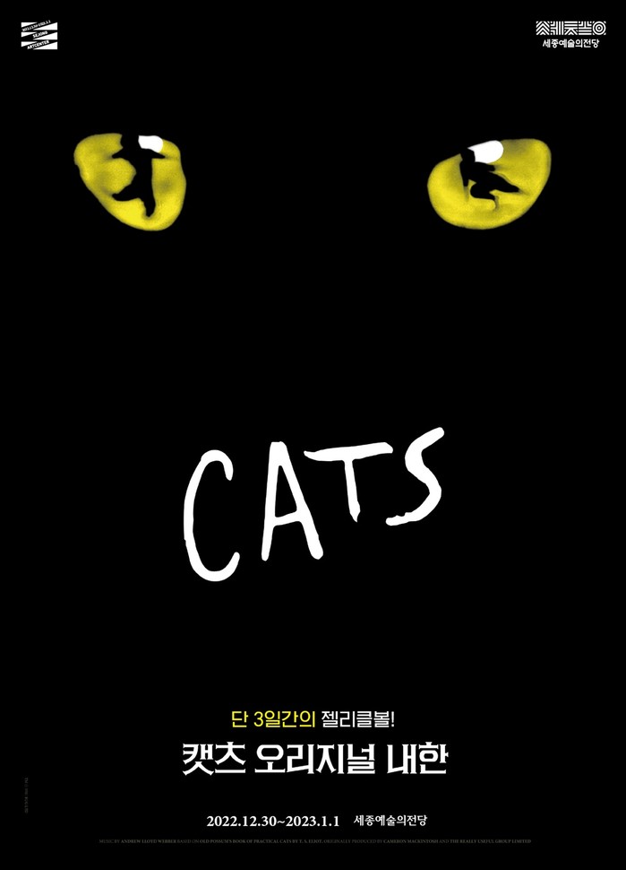 <캣츠> 내한공연은 오는 12월 30일부터 2023년 1월 1일까지 세종예술의전당에서 젤리클 축제를 펼치며 감동의 무대를 선사할 예정이다. 8세 이상 관람 가능하다. 기타 자세한 사항은 세종예술의전당 으로 문의하면 된다.