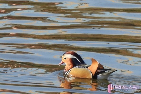 | ▲월동을 위해 날아온 안양천 원앙(사진=안양시) |