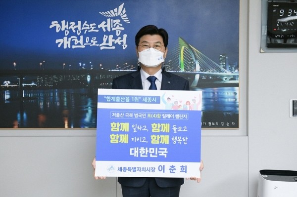 [프레스뉴스] 최정현 기자= 이춘희 세종시장이 저출산 문제 극복을 위해 16일 ‘저출산 극복 범국민 포(4)함 릴레이 챌린지’에 동참했다.