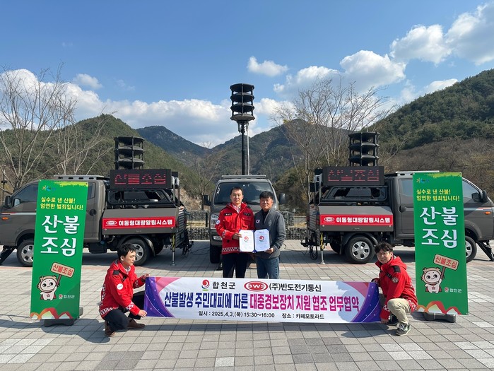 장재혁 합천 부군수는 “산불 예방도 중요하지만, 무엇보다 인명 피해를 최소화하는 것이 최우선”이라며 “이번 협약을 통해 반도전기통신이 자체 개발·보유한 울트라보이스를 적극 활용함으로써 신속한 주민 대피가 가능해질 것으로 기대한다”고 밝혔다.
