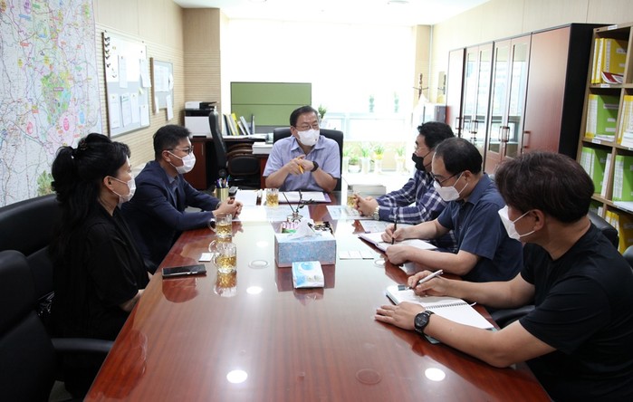 ▲ 세종시의회 유인호 의회운영위원장이 지난 2일 주민자치회 활성화 방안에 대한 간담회를 가졌다.(사진=세종시의회 제공) |