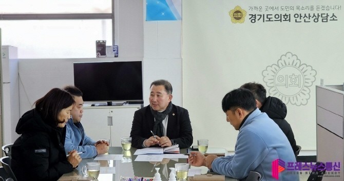 [프레스뉴스] 김대일 기자= 경기도의회 문화체육관광위 김철진 의원(더민주, 안산7)은 23일 경기도의회 안산상담소에서 김현진 안산시체육회 사무국장을 비롯한 임직원과 2024년 경기도체육진흥공모사업과 관련하여 업무를 보고받고 전반적인 의견을 나누기 위해 간담회를 열었다.