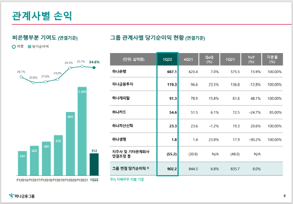 | ▲ 관계사별 손익 그래프(사진=하나금융그룹) |