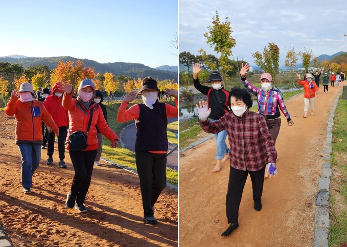 | ▲황룡강 황미르랜드에서 걷기 운동 중인 주민들(사진제공=장성군) |