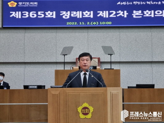 | ▲ 경기도의회 이택수 의원이 2일 본회의장에서 열린 제365회 정례회 제2차 본회의에서 5분 자유발언을 하고 있다.(사진=경기도의회) |