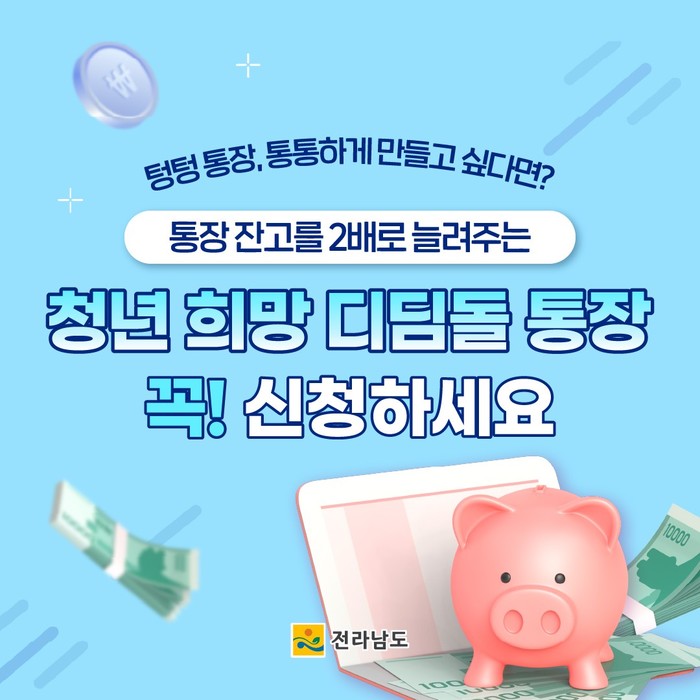 [전남=프레스뉴스] 강래성 기자= 전라남도는 5월 3일까지 ‘2024년 청년 희망디딤돌 통장’ 사업 신규 대상자를 모집, 적격심사를 거쳐 올해 7월까지 1천570명을 선정할 계획이라고 밝혔다.