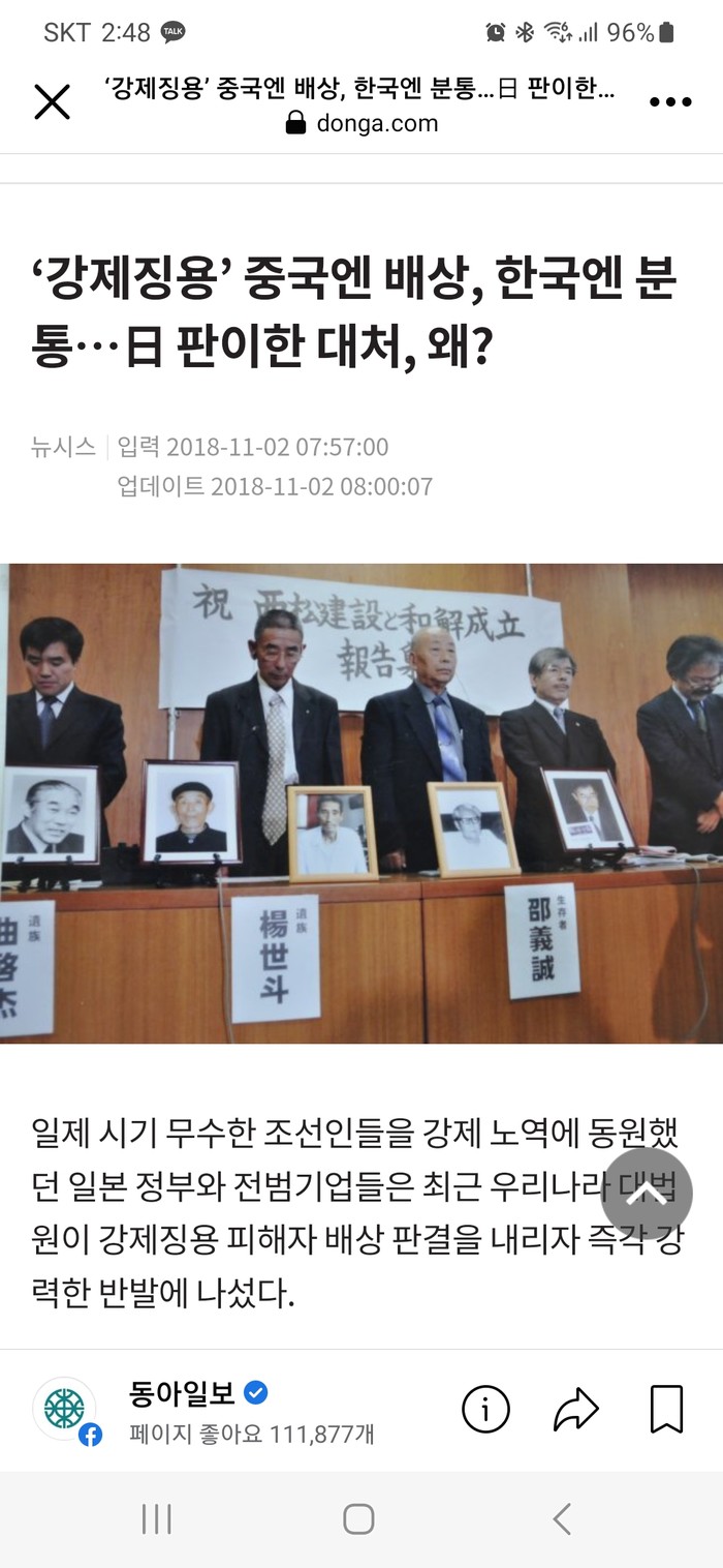 [칼럼] 이언주 전 국회의원= 동아일보가 불과 5년전 강제동원배상문제를 두고 보도한 내용이다. 한일청구권협정과 판박이인 중일협정에도 불구하고 결국 일본기업들로부터 사죄와 배상을 받아낸 사례를 비교하며 우리 정부의 노력 부족과 일본측의 무성의한 태도에 대해 비판적으로 쓴 기사이다. 그 즈음 동아일보 외에도 뉴시스 등 많은 언론사들이 유사한 논조의 기사를 보도했다.