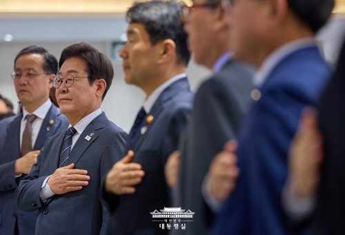 이 대통령 또 "안보가 지금은 경제 문제와 아주 직결돼 있어서, 정치 구호처럼 들리던 '평화가 곧 경제고, 평화가 밥이다' 이런 얘기가 이제는 현실이 됐다"면서 "한반도에 평화 체계를 구축하는 일, 안보를 튼튼하게 하는 일, 우리가 신경을 써야 될 중요한 일"이라고 강조했다.